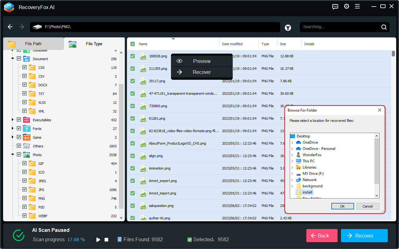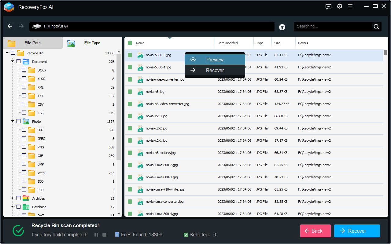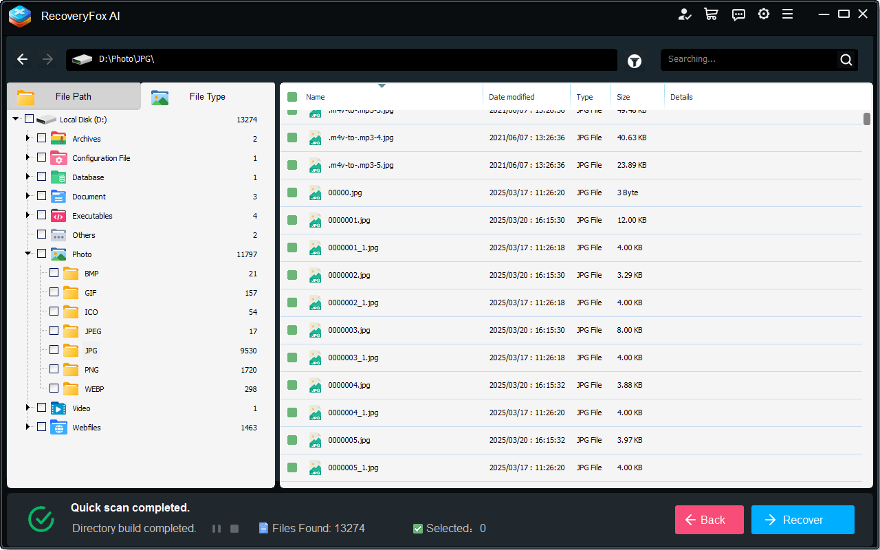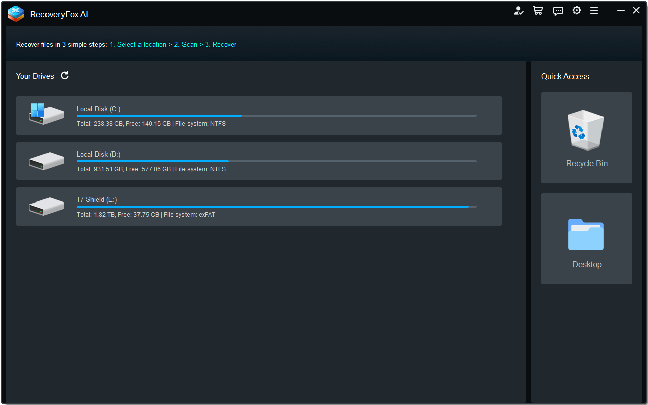 RecoveryFox AI ist eine KI-gestützte Datenrettung für Windows, die verlorene oder gelöschte Dateien von internen/externen Laufwerken, USB-Sticks und SD-Karten wiederherstellt. Der Workflow ist bewusst einfach: Ort wählen, scannen, Vorschau prüfen, wiederherstellen. Die Software arbeitet ressourcenschonend und deckt über 500 Dateitypen ab – von Dokumenten bis Medien.